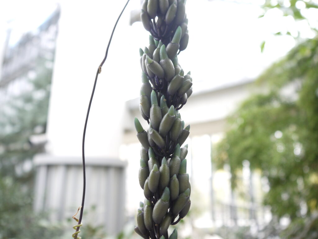 2026年のヒスイカズラ。例年より1週間以上早く、つぼみが下りてきています!