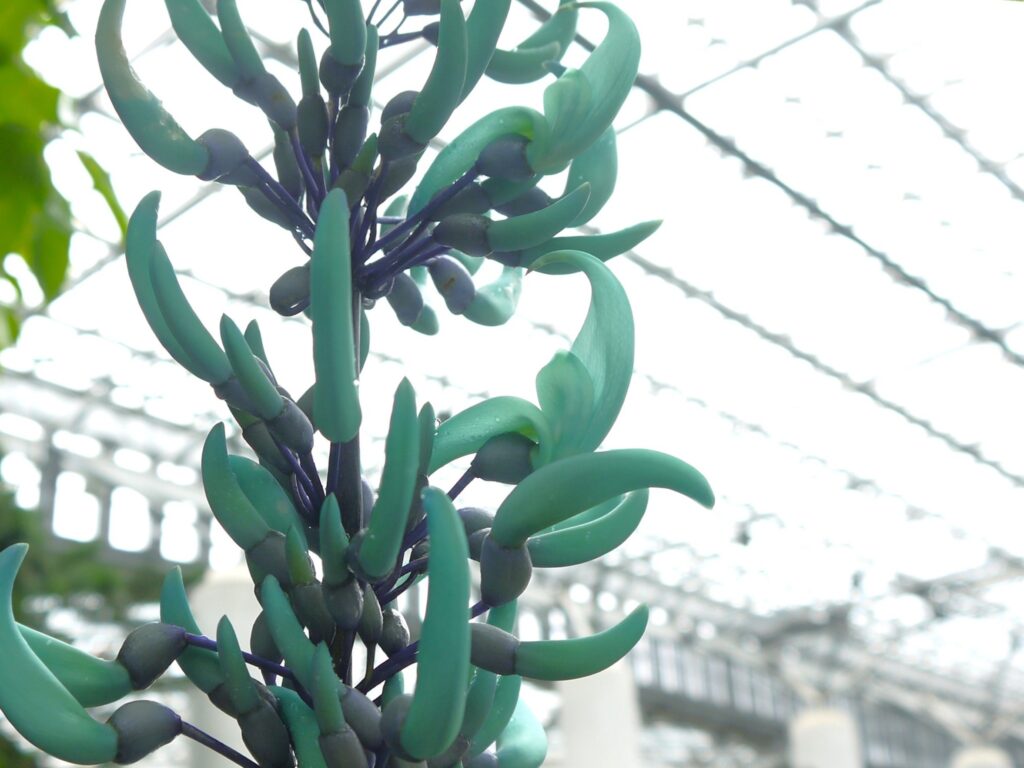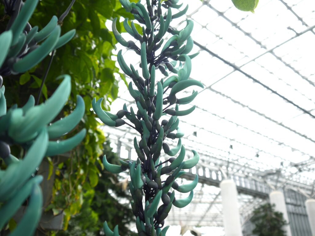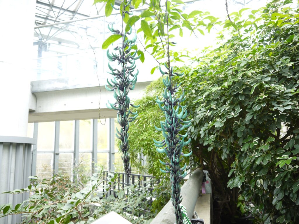 開花しているお花が増えてきました!今なら、目の前できらめくヒスイカズラがご覧いただけます!
