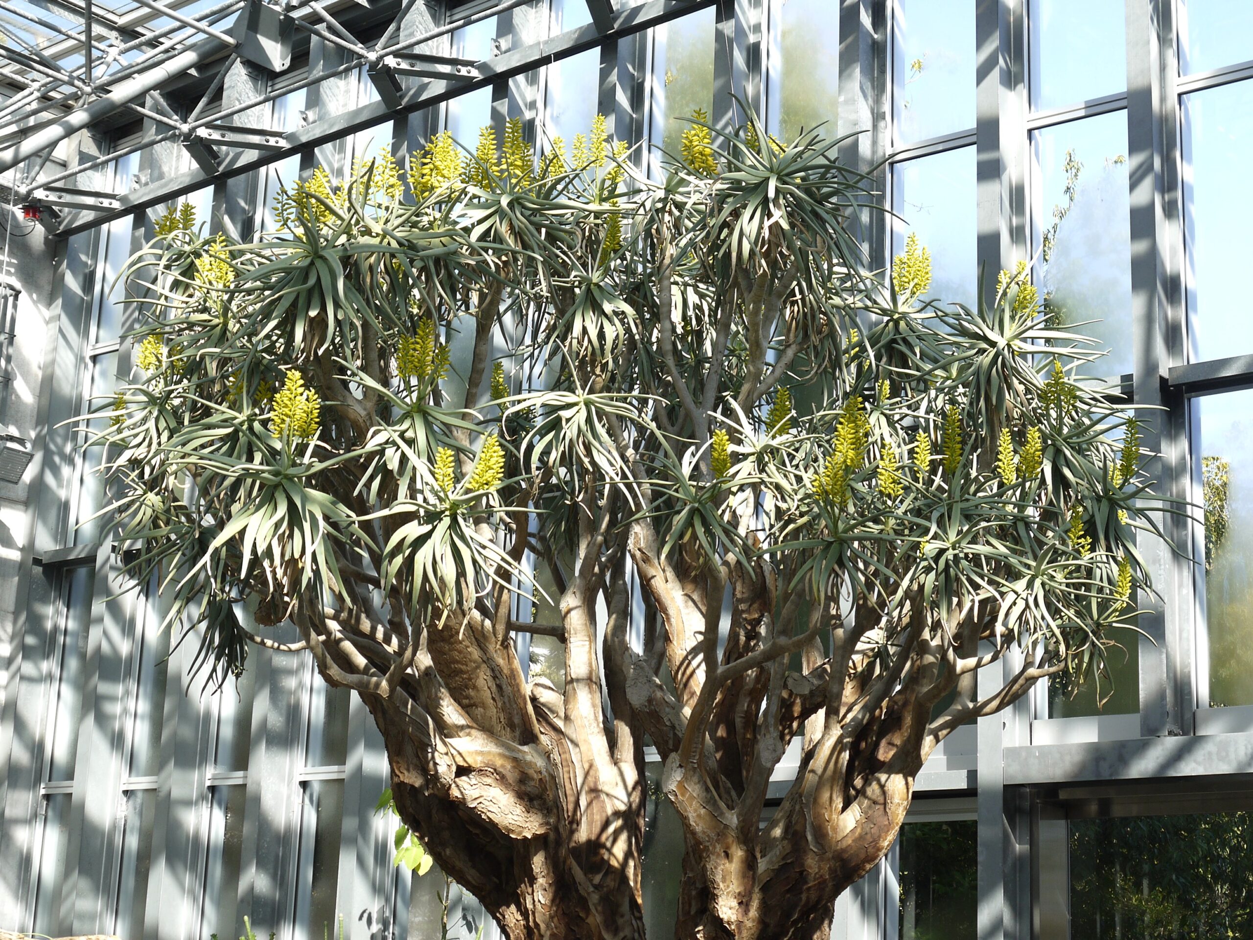 【展示室1】 ナミビア南西部から南アフリカ共和国北西部、ナマカランドとよばれる地域に自生するアロエの仲間です。太い茎は、水や養分を蓄えるタンクの役割をしており、雨がなくても何年も生きることができるといわれています。 “デ...