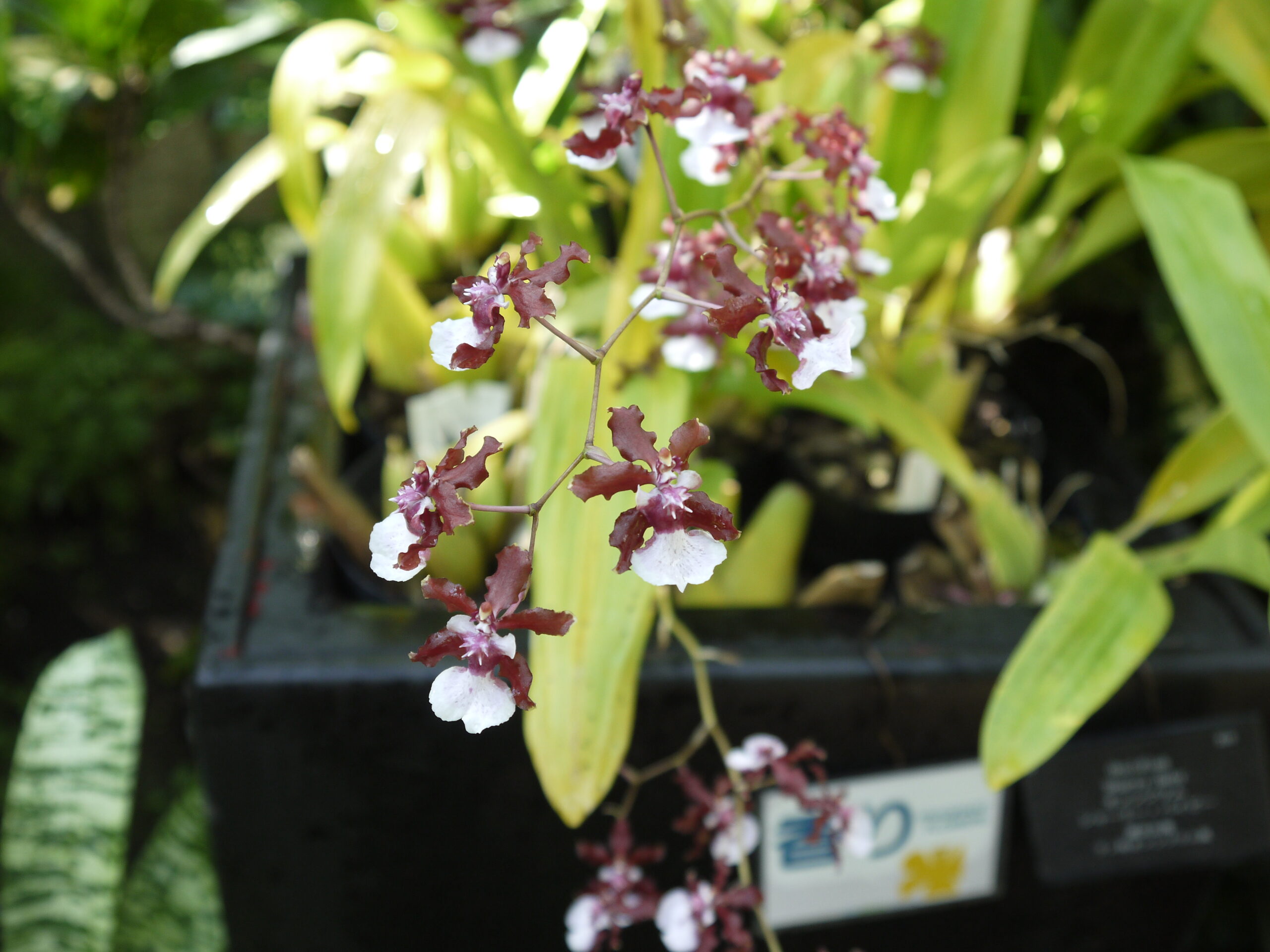 【展示室2】 オンシジウム・シャリーベイビー ‘スウィートフレグランス’ は、10 月から 3 月にかけて、深い赤と白の小さな花をたくさん咲かせる人気のランです。背が高くしなやかに伸びる花茎の先にびっしりと花をつけ、ふん...