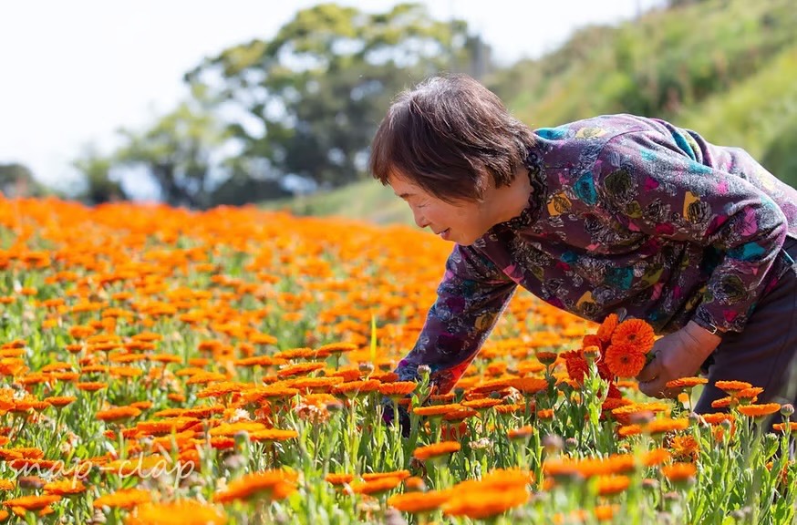 淡路島の在来種であるキンセンカ(カレンデュラ)「むらじ」。この品種は、大ぶりで、鮮やかな色が魅力で、花びらだけでなく茎や葉まで食べられる、希少なエディブルフラワーです。淡路市の廣田農園では、50年以上にわたりカレンデュラ(キンセンカ)「むらじ」を栽培しています。