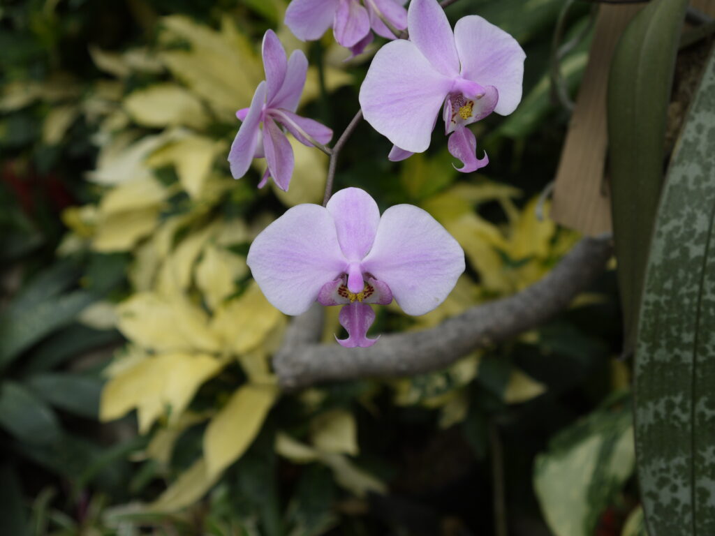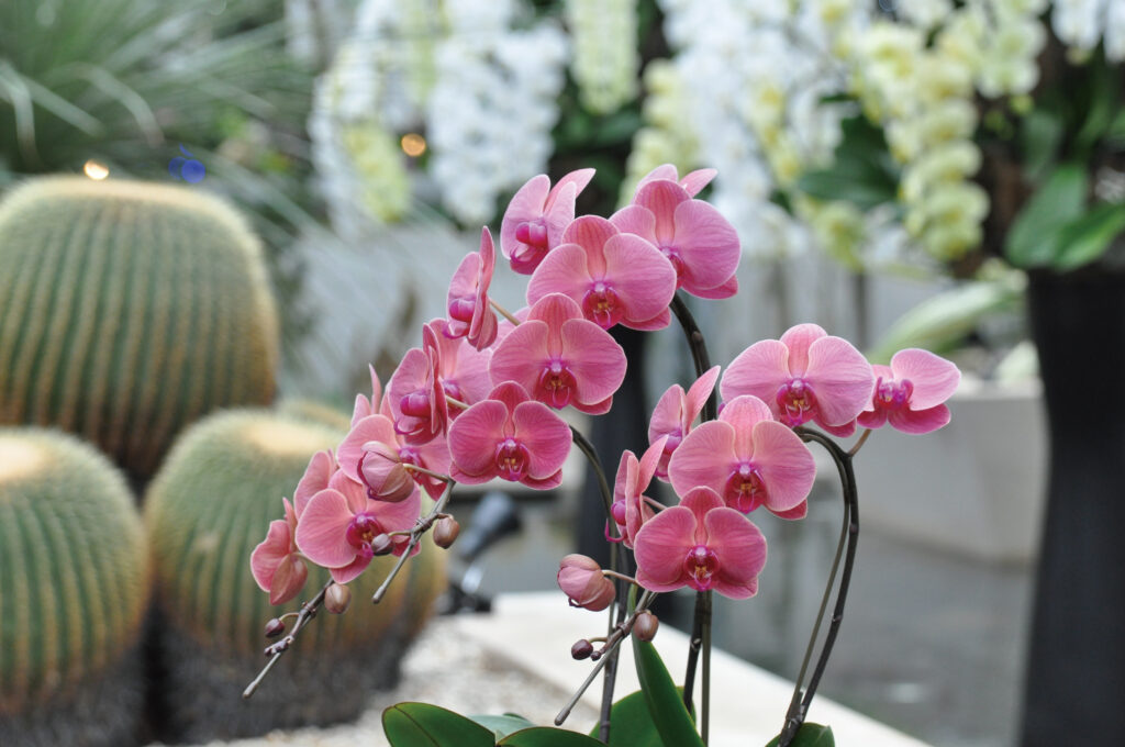 館内テラスにて、個性豊かな台湾生まれの胡蝶蘭を紹介するコーナーを設けています。